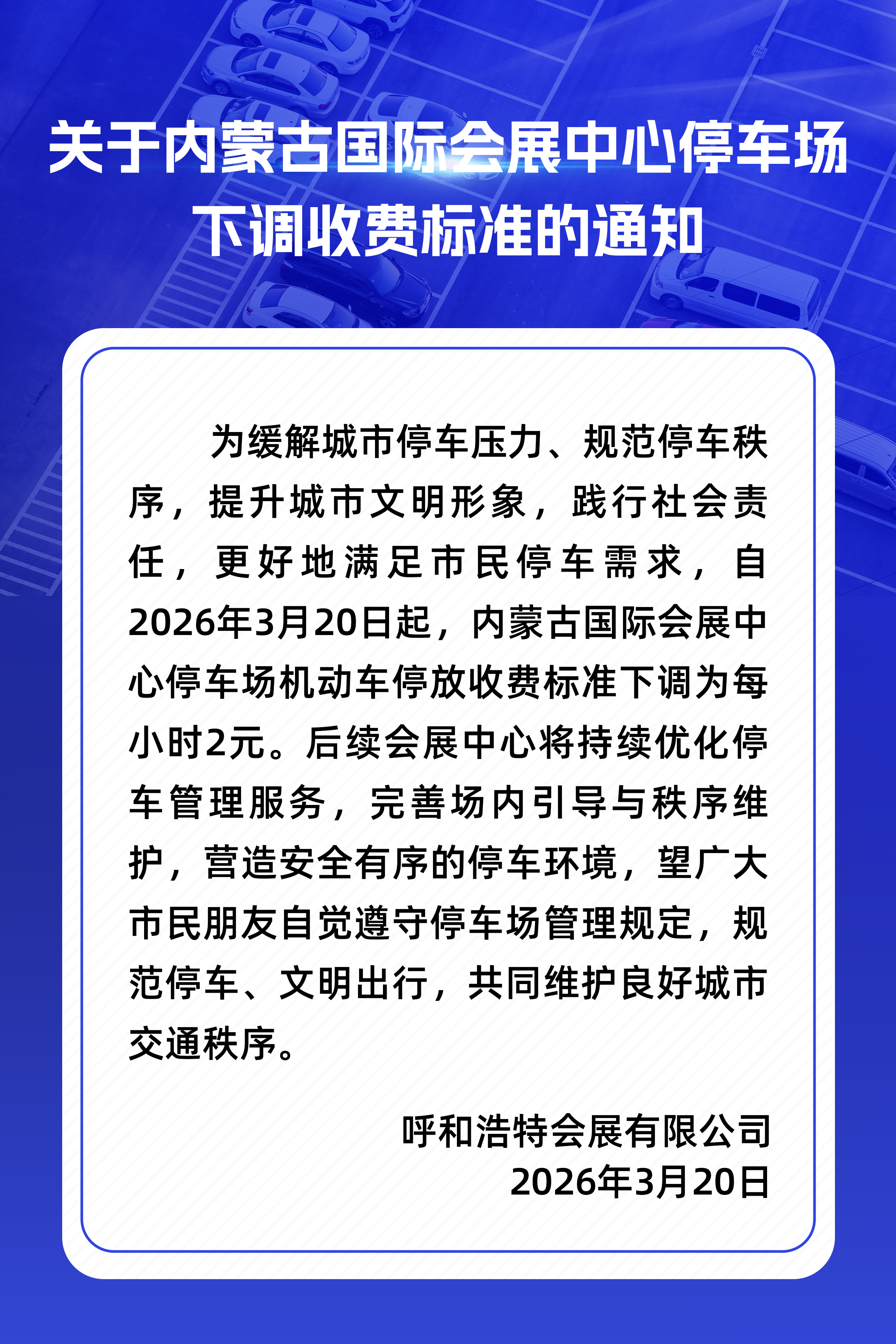 - 內(nèi)蒙古國際會展中心停車場下調(diào)收費(fèi)標(biāo)準(zhǔn)通知